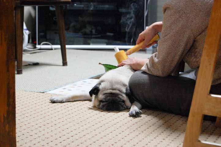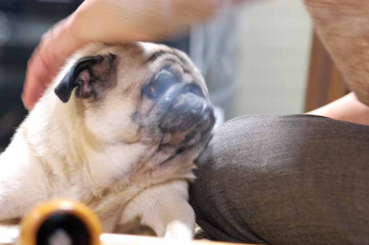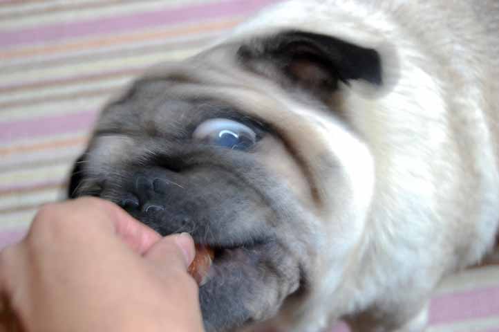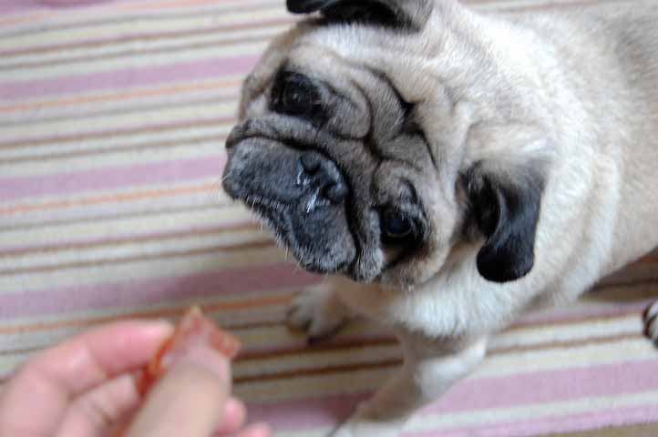 帰宅した家人であろうが、まずぷーたろー氏にオヤツを献上することが